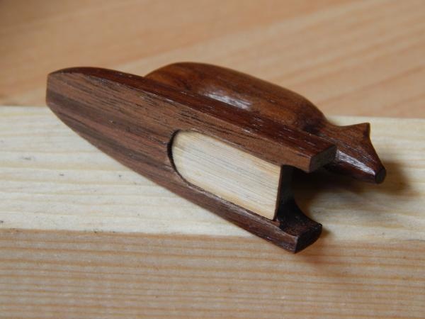 When you make your air channel into the flute’s block, there’s no need to sand down the splitting edge on the top – it should remain intact with the slope on the bottom side only. This way, when the hole has proper size, the sound of the flute will remain loud and clear.